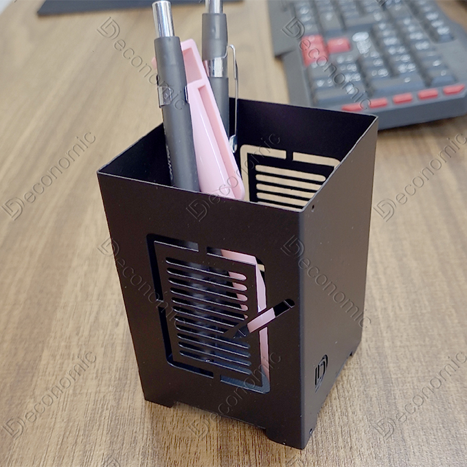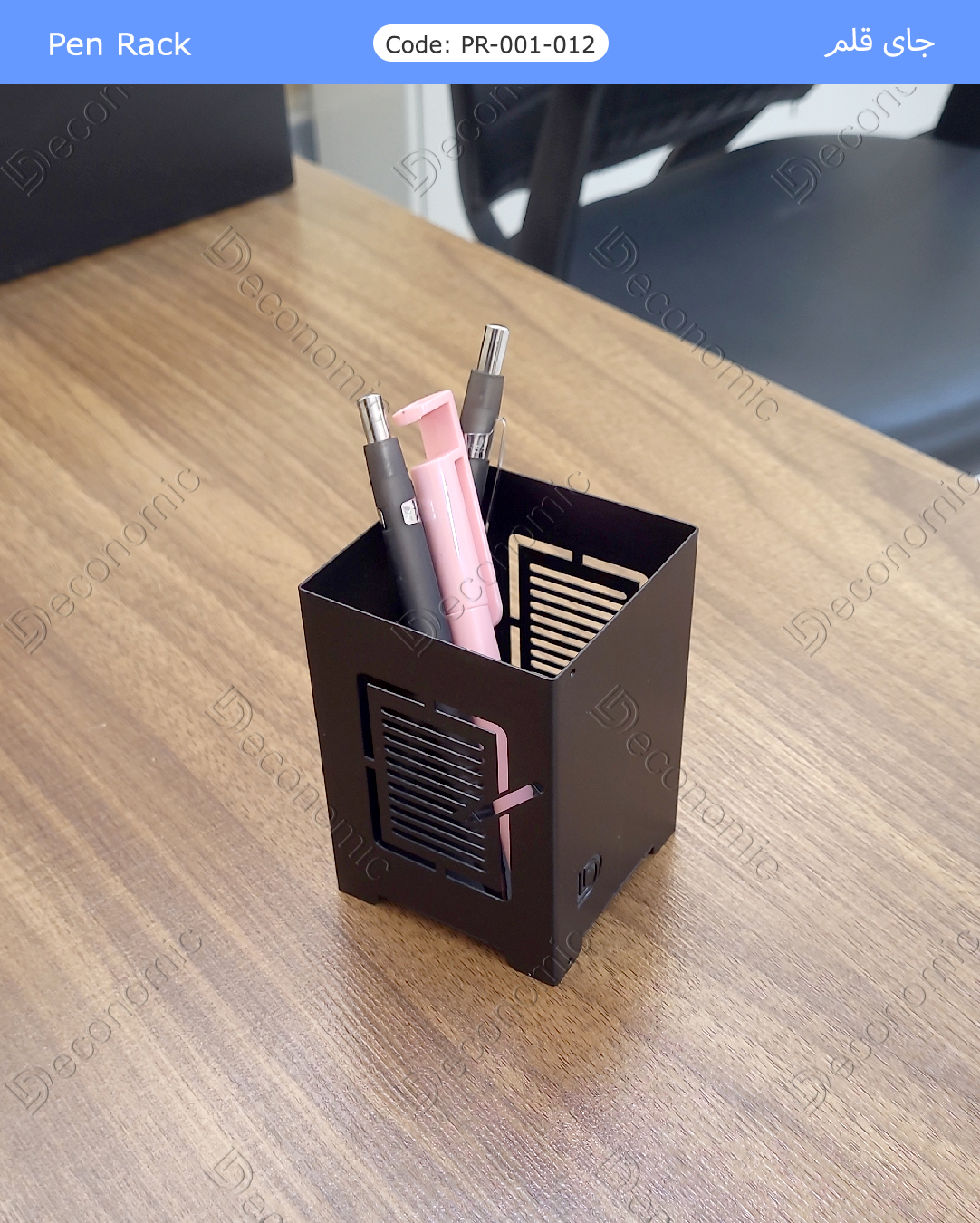 این محصول از فلز مقاوم با پوشش رنگ کوره ای مشکی مات ساخته شده و علاوه بر استحکام بالا ،جلوه ای شیک و مینیمال به میز شما می بخشد.سوراخ های مشبک طراحی شده روی بدنه علاوه بر زیبایی باعث گردش هوا و جلوگیری از تجمع گرد و غبار در داخل جا قلمی می شوند.